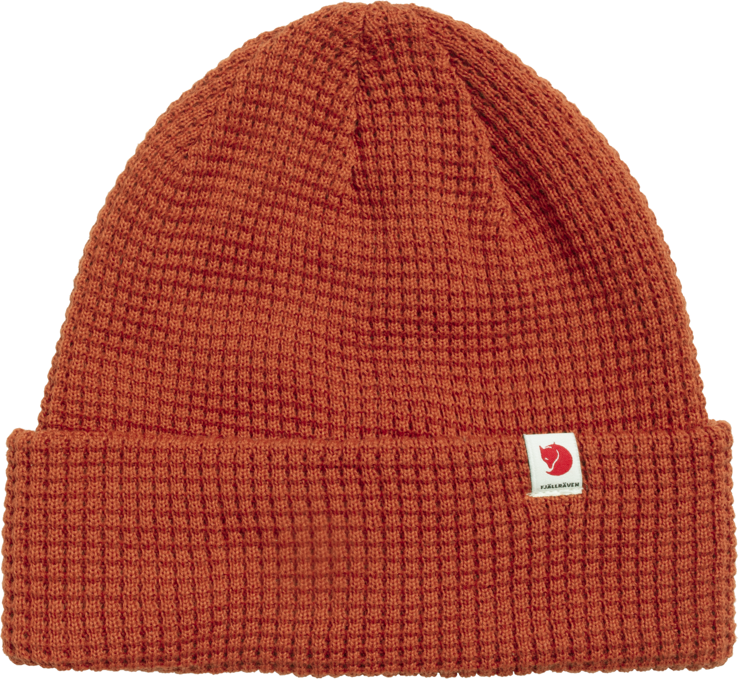 The Fjällräven Tab Hat is a soft and comfortable knitted beanie crafted from recycled polyester. It showcases a stunning waffle knit with a wide, foldable brim and a small textile logo. The material effectively wicks moisture away from the skin and dries quickly, making it ideal for both everyday wear and mountain trekking.