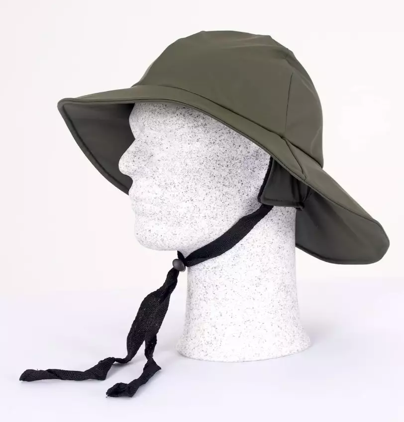 A classic and highly functional rain hat, crafted from durable and rip-resistant PU fabric. The brim is shorter in the front and longer on the sides and back for enhanced coverage.