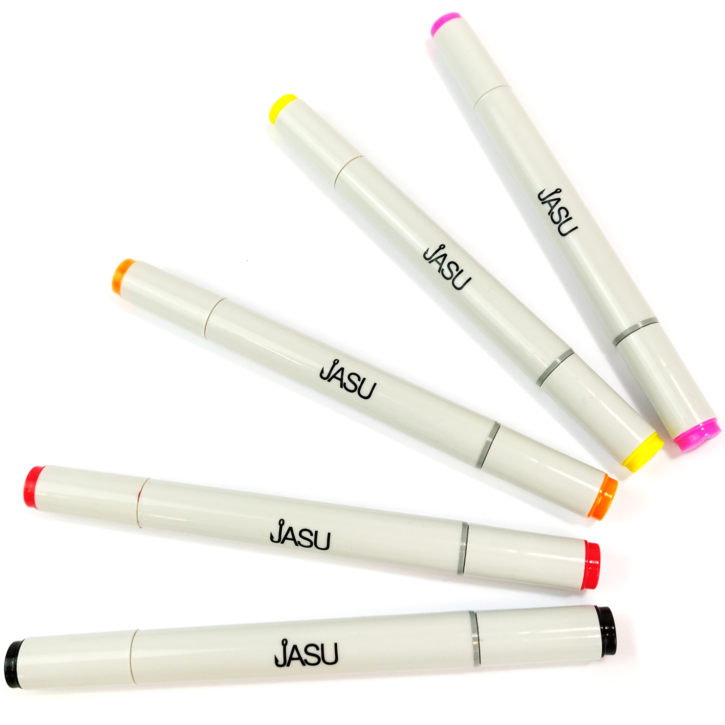 The Jasu Jig Markers empower you for more effective fishing. With these markers, you can transform the color schemes of your jigs on the fly, tailoring them to the day's conditions. Create alluring stripes or disruptive points to entice predatory fish to strike your bait. The Jasu Jig Marker assortment includes five attractive and effective colors: Black, Orange, Red, Yellow, and Pink.