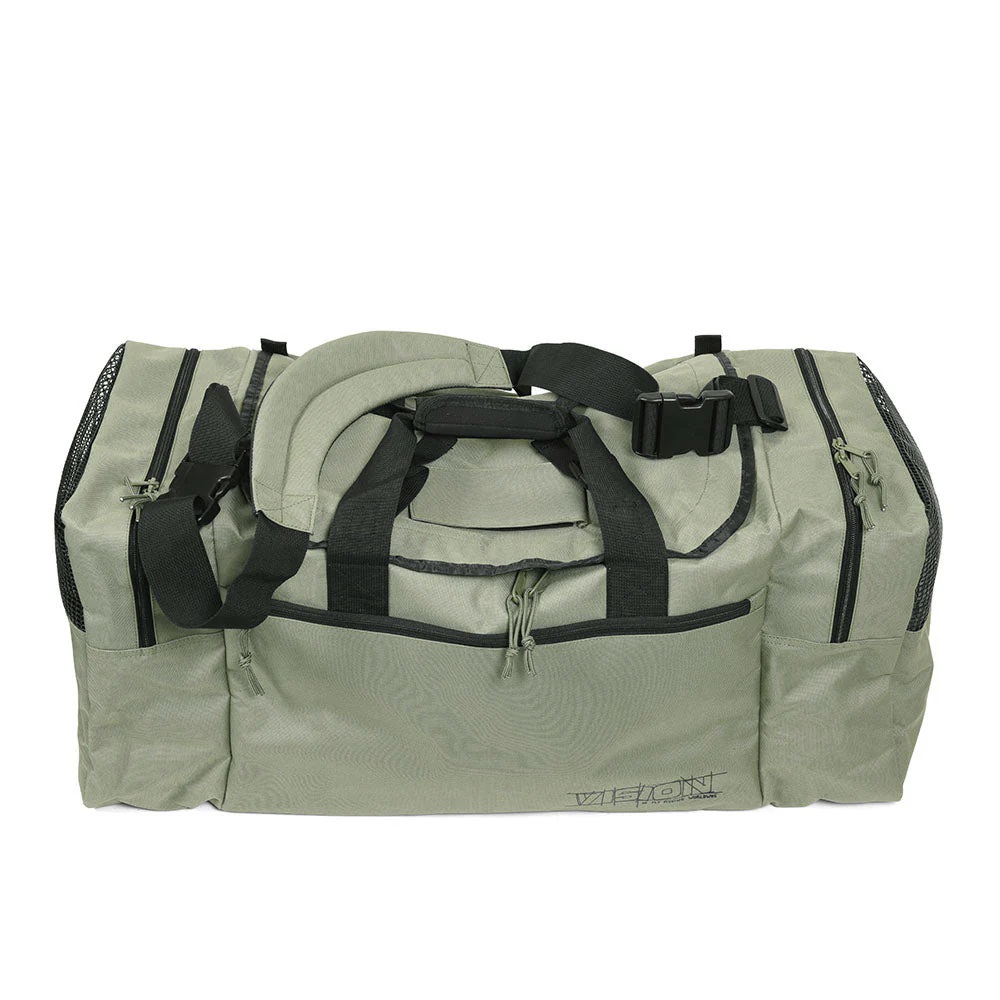 This versatile gear bag is made from durable 600 denier Oxford polyester. The robust design features a large main compartment with a U-shaped zipper for easy access. Inside this compartment, there are mesh pockets for small accessories or even reels, which stay securely in place thanks to the elastic straps. End pockets are equipped with ventilation mesh to allow moisture from wet waders to escape. Additionally, the bag includes a large side pocket for all your miscellaneous gear. Dimensions: 32.3" x 13.4" x 13.4". The bag also features a name tag pocket and an adjustable shoulder strap with padding. The 2" wide carrying straps are likewise sturdy and can be fastened together with Velcro.