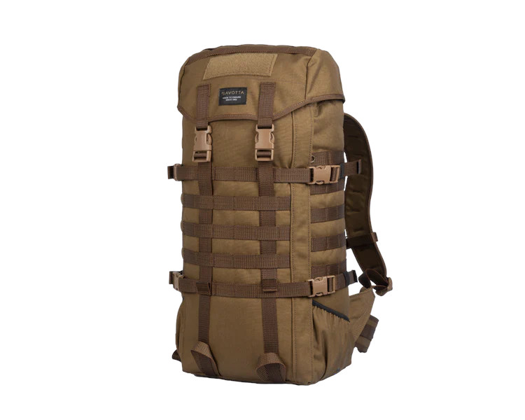 The Savotta Jääkäri backpack is an enhanced version of the originally designed Lightweight Border Patrol pack for the Border Guard. The design has taken genuine user experiences into account, with the best ideas integrated into the Jääkäri. The Jääkäri surpasses the capabilities of a regular daypack. Numerous features and the extensive "MOLLE" webbing make this pack incredibly modular and versatile for work tasks. Due to its slim profile, the backpack does not hinder movement in tight places and is excellent for skiing and hunting. In its size class, the Jääkäri bag is robust to carry. The internal support frame keeps the Jääkäri upright. The compression straps on the main compartment can also tighten a partial load to minimize shifting.
