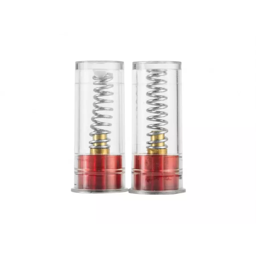 These click cartridges are designed specifically for 12 gauge shotguns, made of durable plastic. This package contains 2 cartridges. They are intended to protect the firing pin during dry fire practice, in situations where trigger control is practiced without using live ammunition.