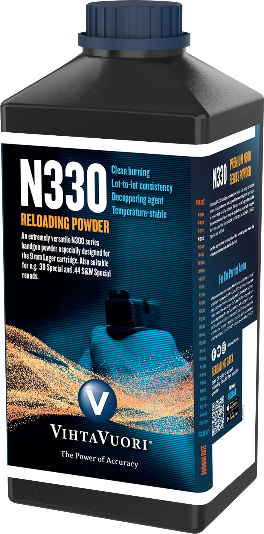 N330 Powder, Vihtavuori, 0.5 kg Canister N330 is a slightly slower powder than N320, ideal for large caliber Cowboy Action firearms, such as the .44 S&W and .45 (Long) Colt. One of the most notable... Read more