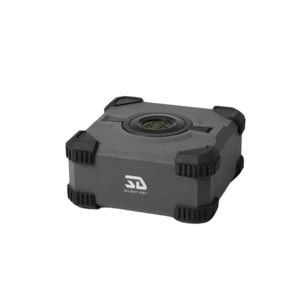 The Silent Dry Hypercube is a stylish solution for dehumidifying gun cabinets. This reusable dehumidifier effectively lowers moisture levels in enclosed spaces, reducing the risk of mold growth, preventing rust, and protecting against oxidation damage.