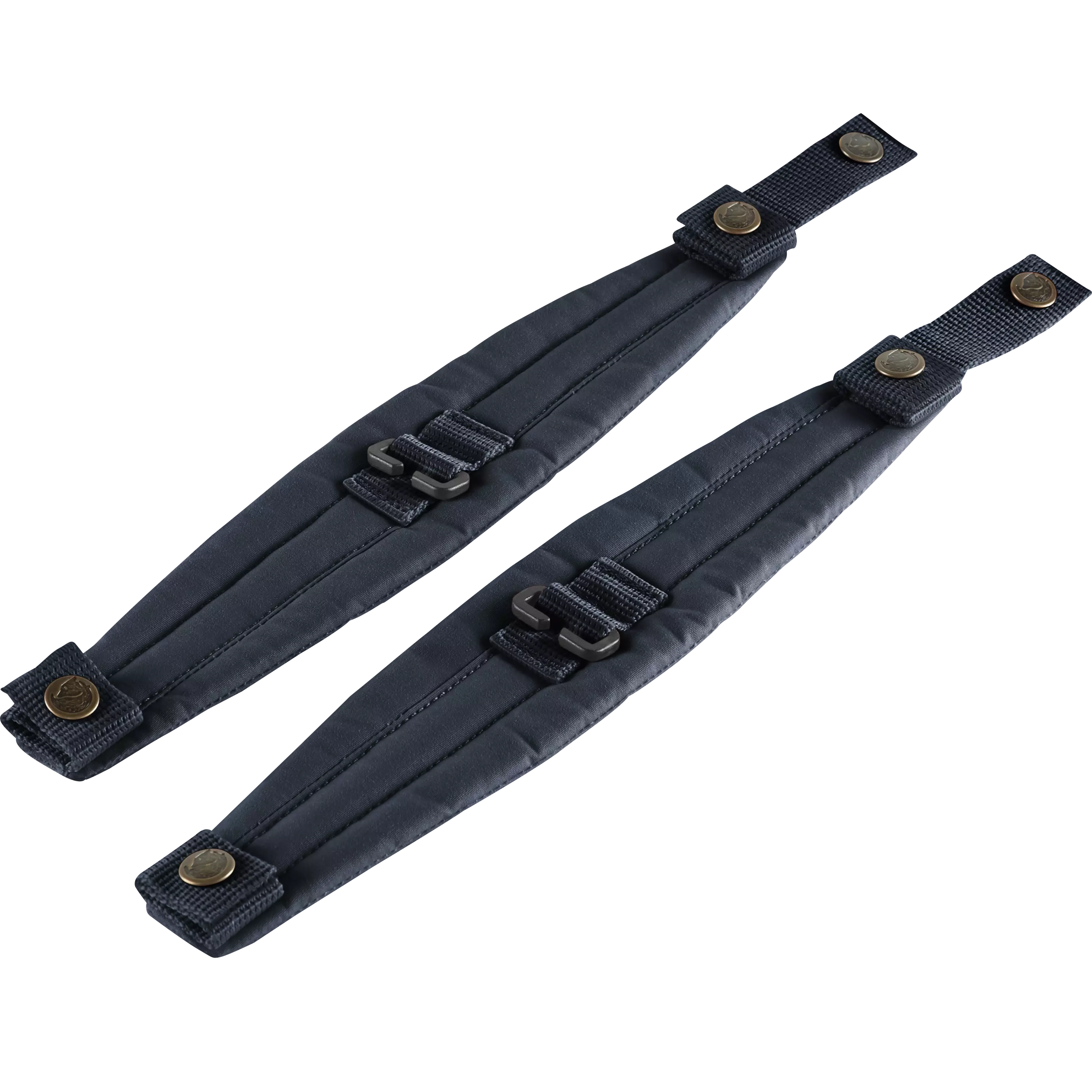 Förbättrade Kånken axelremspaddar (Shoulder Pads) ökar bärkomforten. Fäste med tryckknappar och en clip i mitten. Dessa passar Kånken-väskornas 25 mm breda axelremmar. En nyhet är att du enklare kan använda bröstremmen tillsammans med dessa.