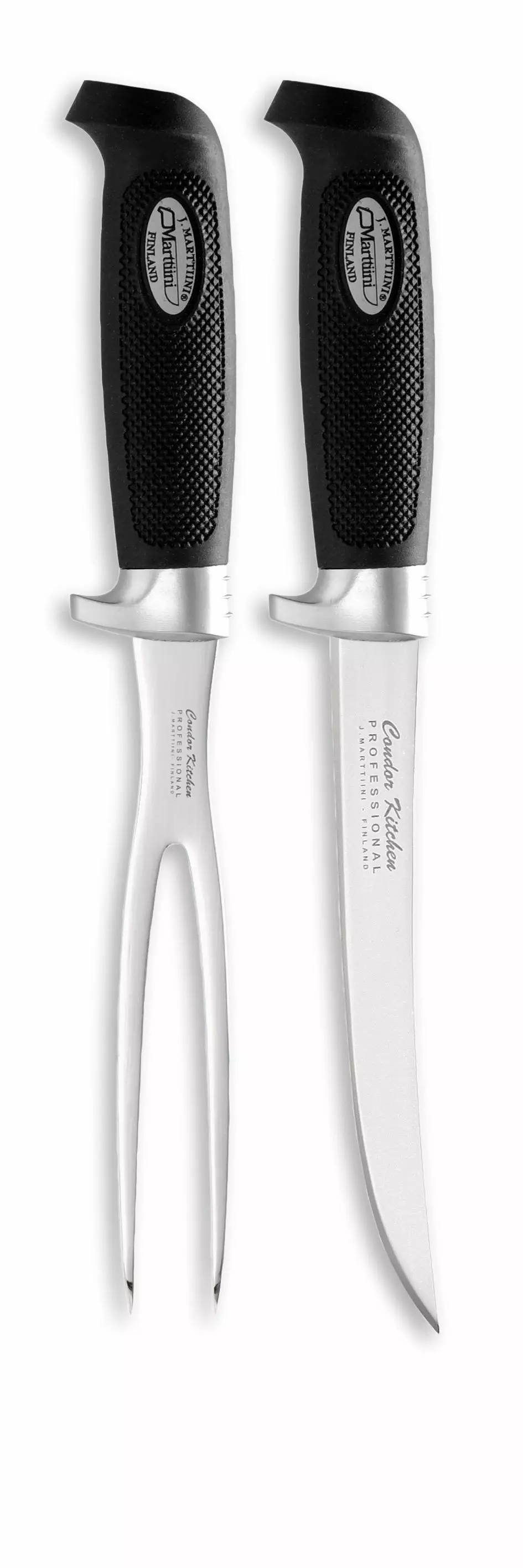 Marttiinis CKP Kinkkusetts stekkniv och gaffel är ett imponerande arbetspar för att skära upp festmåltider.