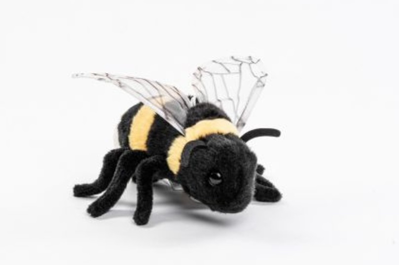 Plyschdjuret Humla, som har ett litet hängande snöre på ryggen, så att du kan få humlan att "flyga".