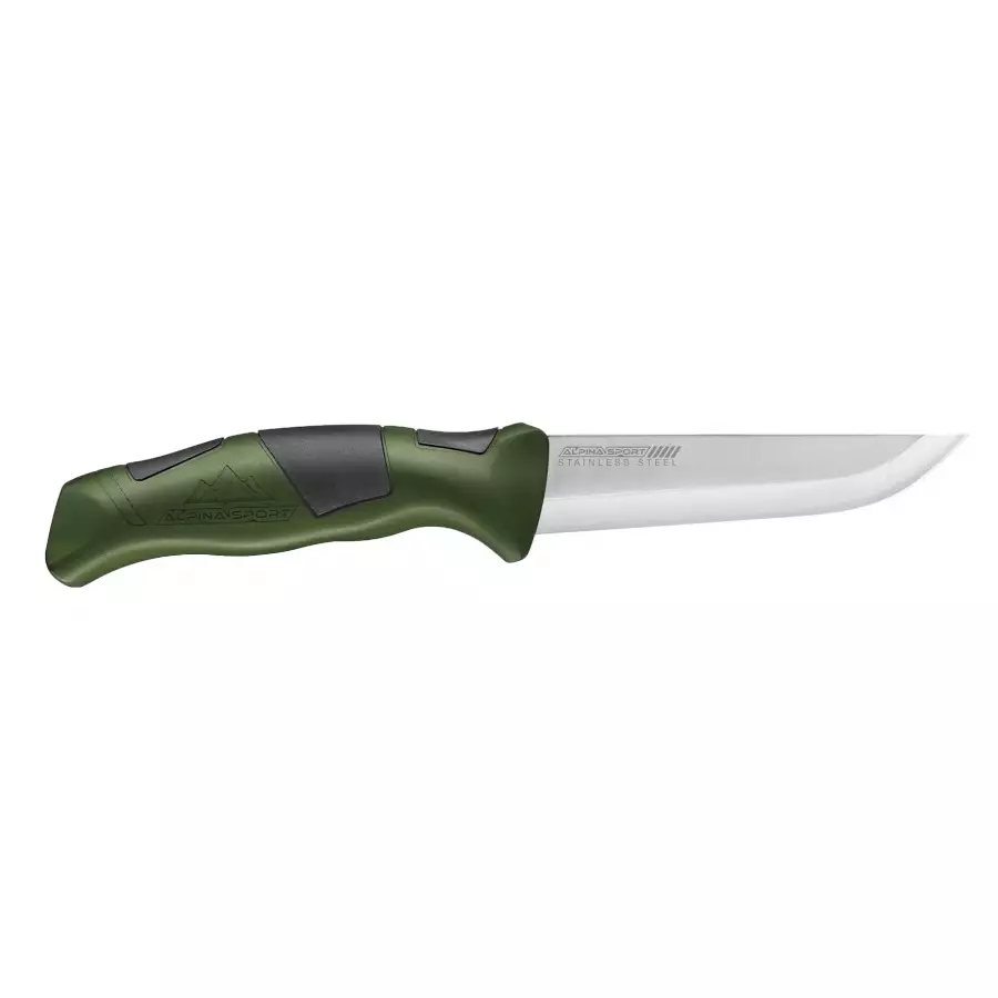 Alpina Sport Ancho är en robust kniv, designad för jakt, fiske, bushcraft och vandring. Bladet är tillverkat av 420 rostfritt stål, vilket gör att det håller sin funktionalitet även när det utsätts för vatten eller ständigt tuffa väderförhållanden (fukt, regn osv.). Handtaget är gjort av plast och är formgivet för att ge ett bekvämt grepp vid alla handtag. För att förhindra att kniven glider ur handen, har handtaget utrustats med halkskydd av TRP-plast. Med kniven ingår ett plasthölster, vars största fördel är att det är lätt att rengöra från alla typer av smuts. Hölstret är enkelt att fästa på ryggsäcken eller bältet.