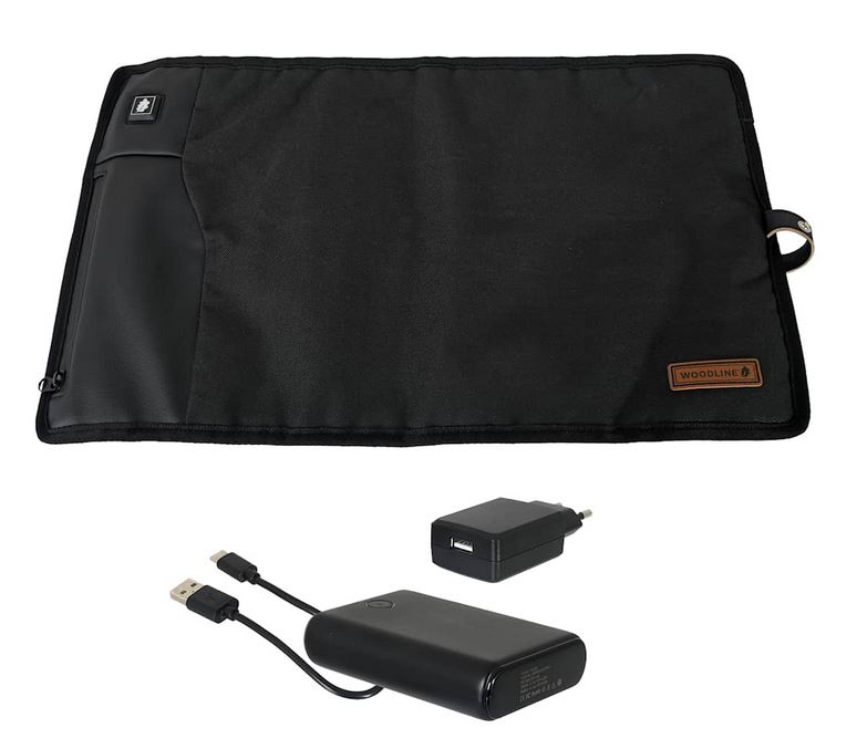 Woodline värmeunderlag Keflavik håller sig varmt när du sätter dig med hjälp av en powerbank. Med det uppvärmda sittunderlaget undviker du att frysa eller få en kall bakdel under pauser eller väntetider. Sittunderlagets inbyggda värmesystem får sin kraft från en 5,0V 10 000mAh powerbank. Underlaget har tre olika värmelägen. På ena sidan av sittunderlaget finns en ficka med en USB-A-kontakt där du kan ansluta powerbanken och förvara den under användning.