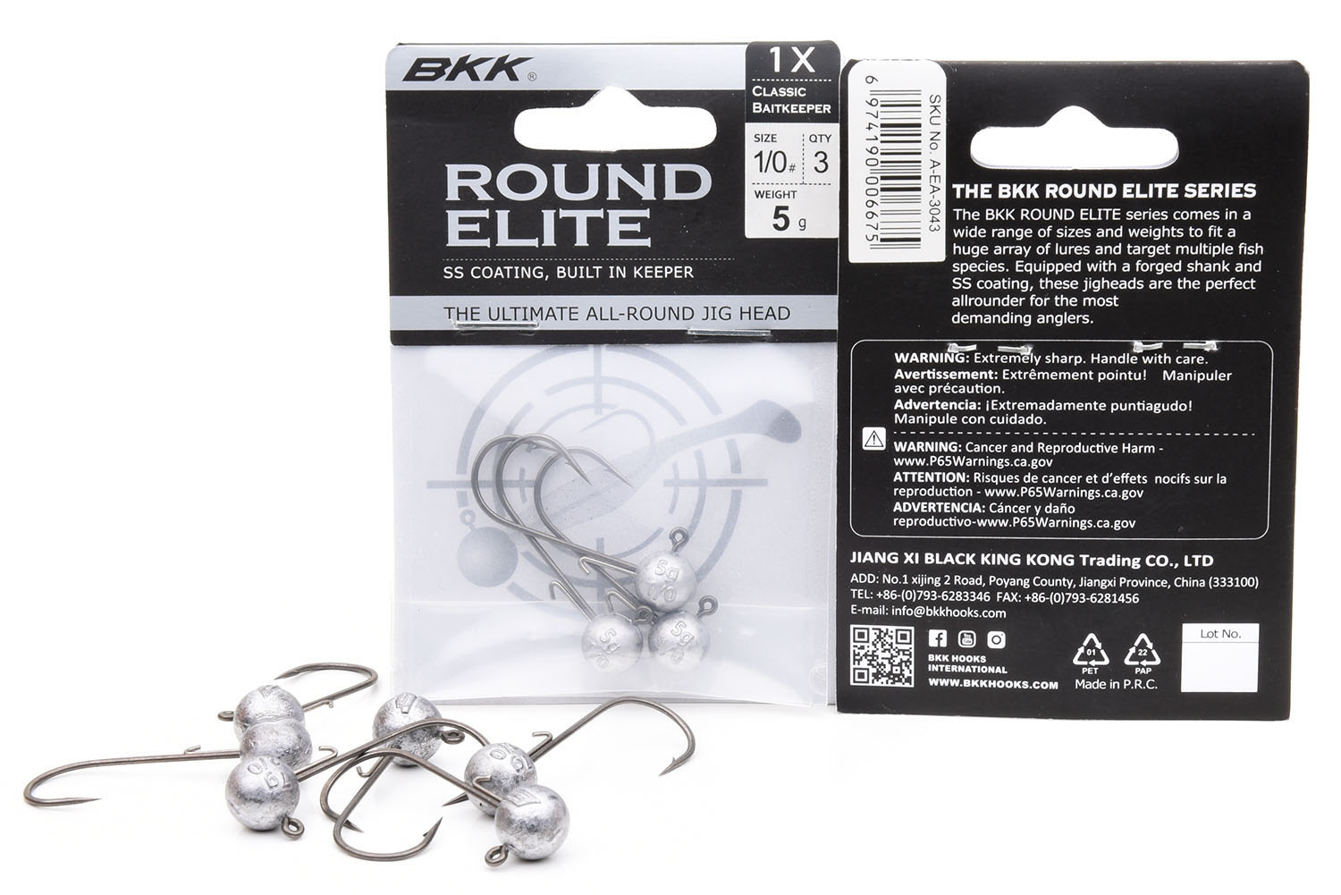 BKK Round Elite Classic-serien har jiggar med högkvalitativa krokar som är behandlade med en slät Super Slide-beläggning. Den nålliknande spetsen tillsammans med Super Slide-beläggningen säkerställer hög gripbarhet. Varje jig har tydligt markerad krokstorlek och vikt på huvudet.