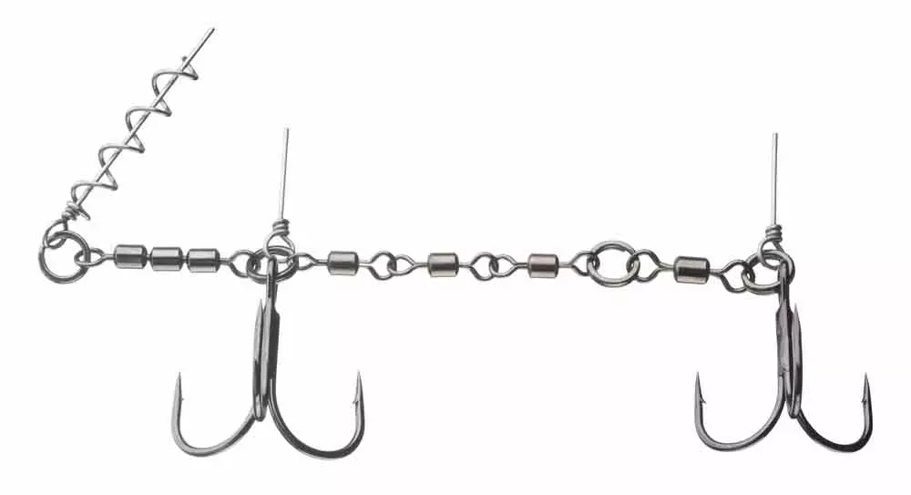 Daiwa Prorex Screw-in Swivel Assist Stinger är speciellt designad för att kroka shadar, det vill säga stora gummibeten. Två storleksalternativ ger flexibilitet för olika beteslängder. Storlek 2/0 passar beten som är 18–25 cm långa, medan storlek 3/0 är avsedd för 20–30 cm beten. Mycket starka trekrokshakar och sidofästen håller fisken effektivt fast.