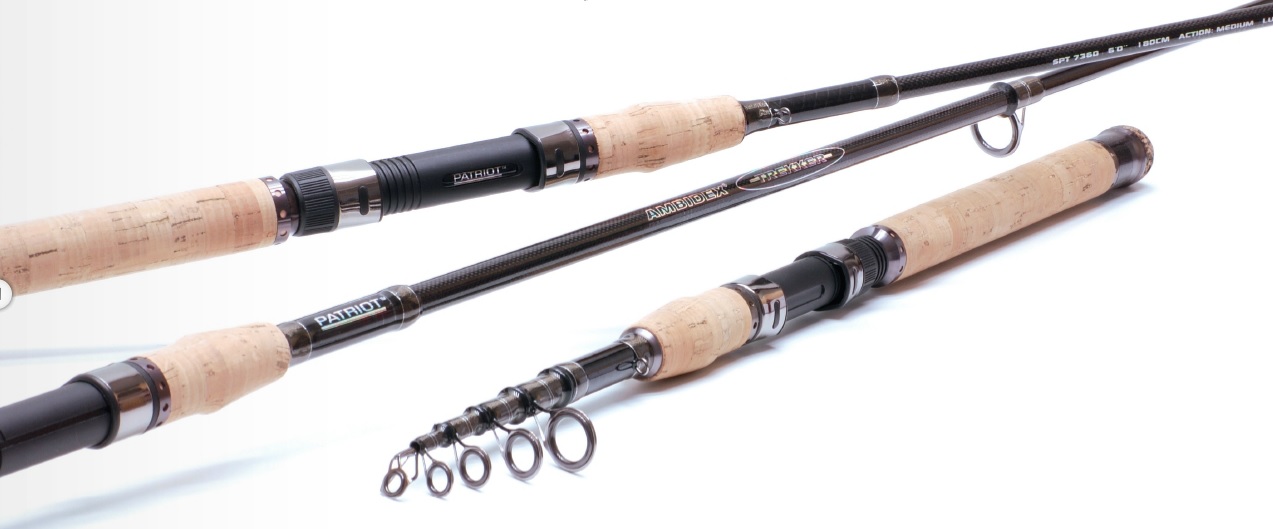 Patriot Ambidex Trekker är ett praktiskt teleskopspö för fiskaren som campar eller åker båt. Tack vare sin korta transportlängd är spöt lätt att transportera och förvara även i små utrymmen. Med sin innovativa konstruktion är spöets fästen mycket mer hållbara än traditionella teleskopspön. Fästena skadas inte på spöets ringar vid nedmontering.
