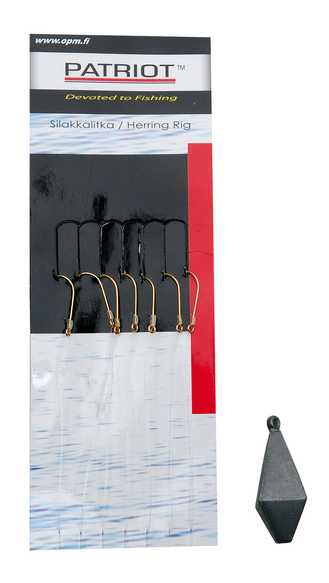 Patriot sillbetet: huvudlinan: 0,40mm/180cm, förlängningslina: 0,35mm/6cm, vikt 28g, krok #6, 7st, guld