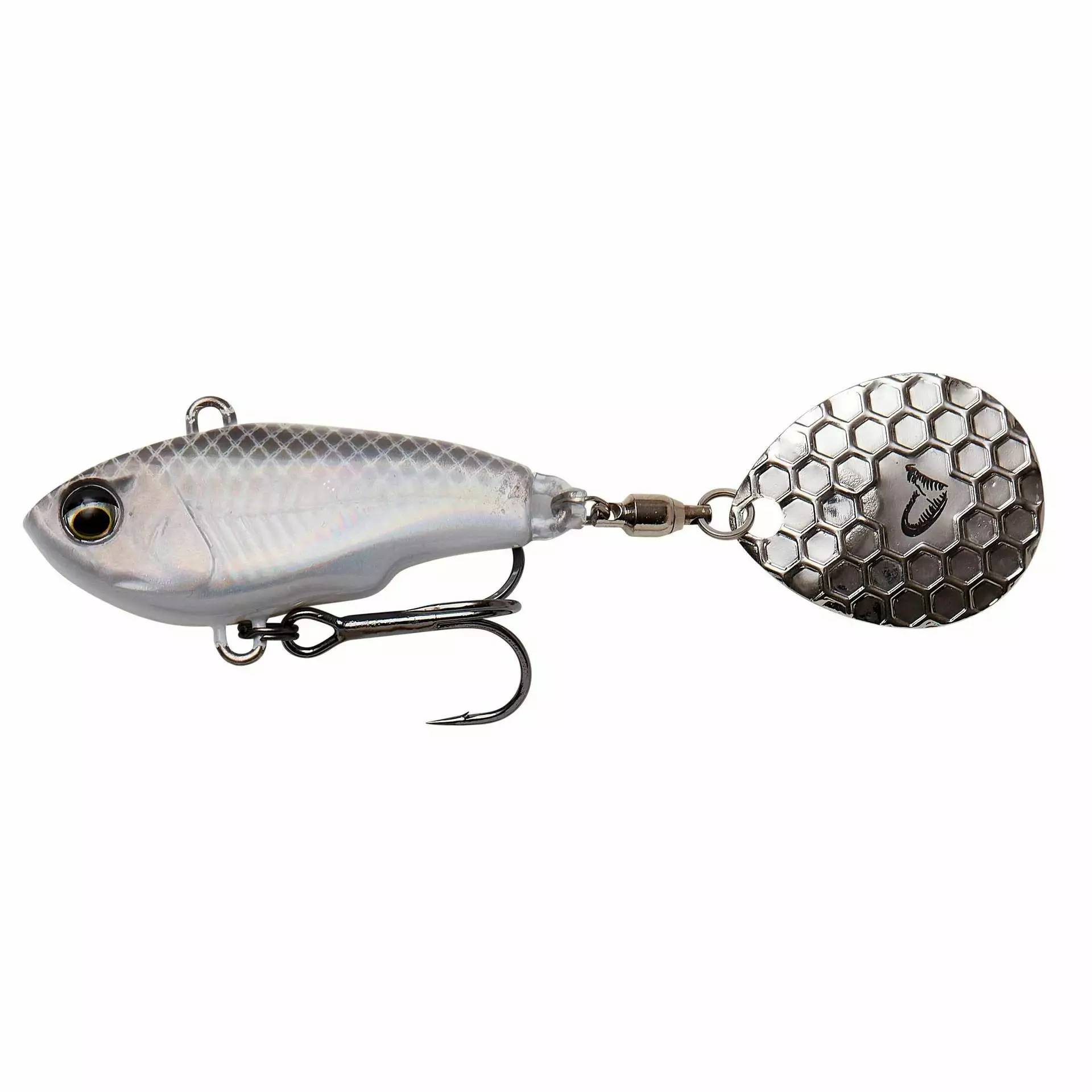 Savage Gear Fat Tail Spin är en mycket mångsidig och långkastande agn som fungerar utmärkt både vid sjunkande och inhämtning. Betet vibrerar och glittrar samtidigt, vilket får fisken att hugga hårt. Kasta och veva in med olika hastigheter och låt det sjunka då och då – fisken kommer garanterat att nappar! Idealiskt för abborre, öring, lax och gädda.