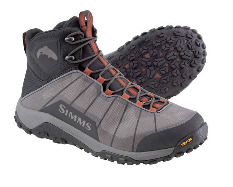 Simms Flyweight Boot vadarskor är av hög kvalitet och extremt lätta. De är särskilt avsedda för användare som värdesätter lätthet och för de som går mycket, till exempel under fisketurer i vildmarken. Till exempel väger en sko i storlek 43 endast cirka 600g, medan många andra modeller kan väga upp till ett kilo. Trots att skon är lätt, är den tillverkad för att vara stabil och hållbar. Den har en ganska låg profil som påminner om flera modeller av vandringsskor, men är ändå tillräckligt robust för att gå på stenig terräng. En stilren design.