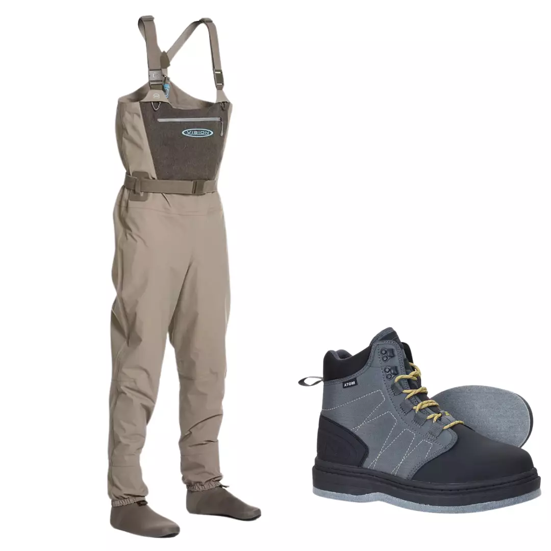 Erbjudandepaket med de lätta Vision Scout Strip 2.0 waders och Vision Atom vadarskor med filtsula! Här är information om produkterna: