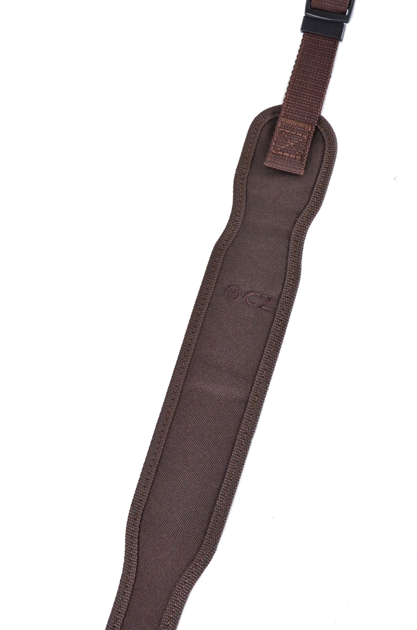 CZ Vapenslinga i nylon/gummi, brun. En stilren och bred vapenslinga med CZ-logotyp.