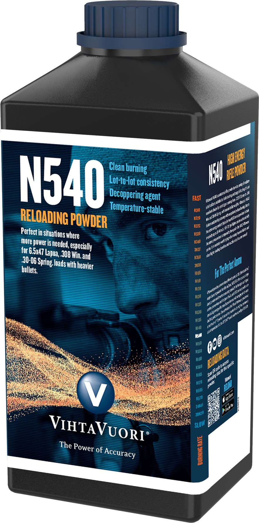 N540 har samma brinntid som N140. Speciellt lämplig för .308 Winchester-kulor.