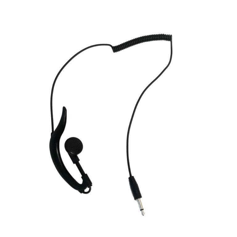 G-formad öronpropp med 3.5mm kontakt och spiral kabel. Öronproppens hölje fästs vid örsnibben och hörluren placeras i hörselgången. Den stänger inte hörselgången, vilket innebär att omgivande ljud hörs normalt.
