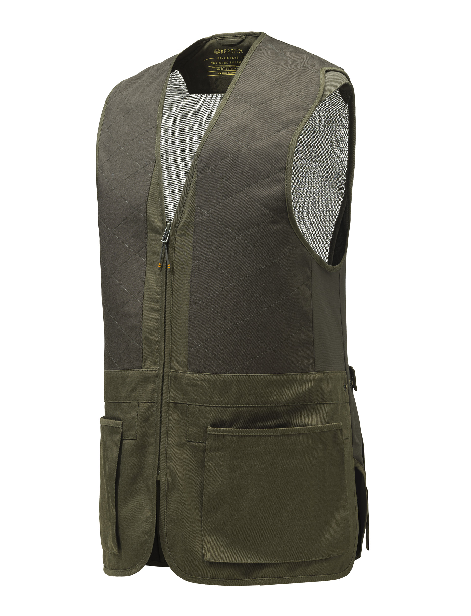 Beretta Tredi Vest skjutväst är tillverkad av bomull med 3D-mesh baktill och resårer i sidorna. Västen är gjord av kraftig 227g bomull vilket gör att den sitter snyggt. Den justerbara midjeriemen gör att du kan anpassa passformen ytterligare.